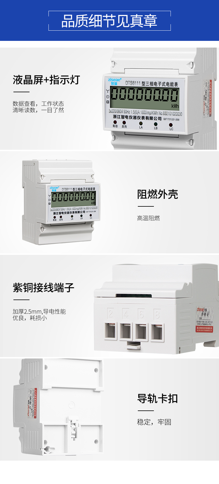 DTS6111、DSS6111型4P三相導(dǎo)軌式電能表(單顯電量)