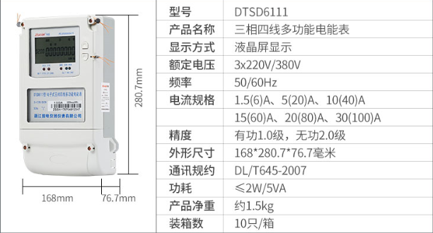 型號:DTS6111三相四線簡易多功能(2007規約)